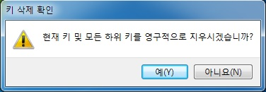 해당 레지스트리에 마우스 오른쪽 버튼 -> 삭제를 클릭 한다.